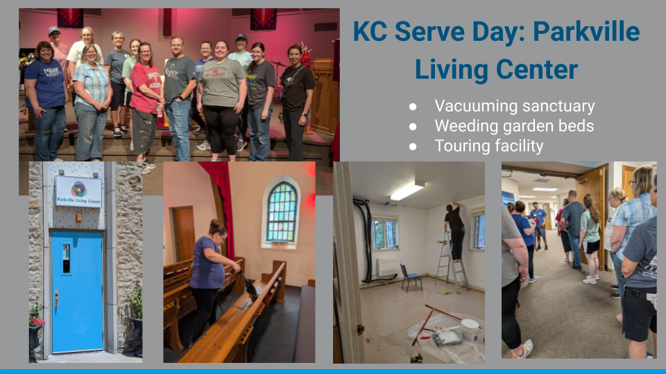 This year, the KC office went to Parkville Living Center to give a little help in the areas of cleaning, organizing, and moving some office space around. The PLC is a true community center, with a great partnership with the church they share space with, Parkville Presbyterian. Theirs is a true partnership and community building center and the serve day organizers were a real treat.